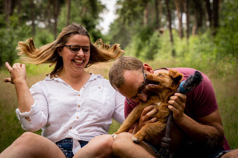 De liefde voor elkaar en voor het kleine hondje spatten er vanaf. Erg mooi om dit voor hen vast te leggen. Een mooie herinnering van de tijd dat hondje Lada net bij hen was. Heel veel geluk samen!